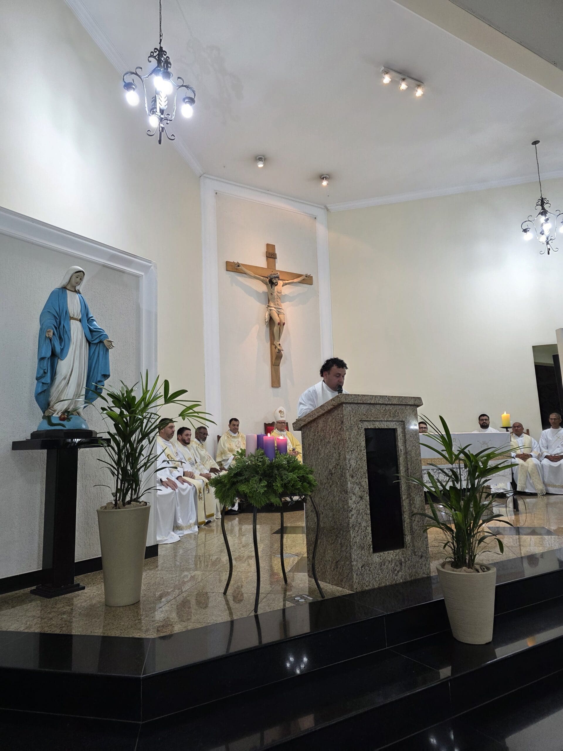 A celebração contou com a presença de padres e diáconos da Diocese, expressando a fraternidade presbiteral e a comunhão eclesial: