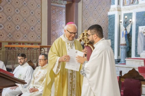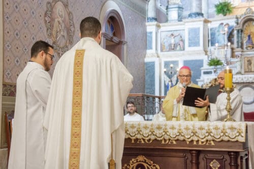 Foram entregues também outros símbolos próprios do ministério, como o Livro dos Evangelhos, a estola e a pia batismal, que representam o anúncio da Palavra, o serviço sacramental e o compromisso com a vida nova dos filhos de Deus.