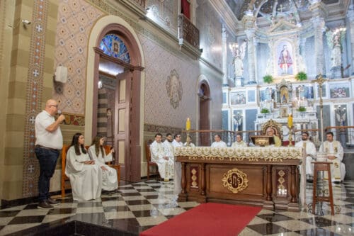 A celebração teve início com a apresentação e acolhida do novo pároco, gesto que marca oficialmente sua chegada e o reconhecimento da comunidade paroquial como seu novo campo de missão.