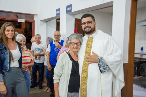 Ao final da celebração, o novo pároco recebeu os cumprimentos do prefeito municipal, Rafael Vezzan, e foram apresentadas todas as pastorais, movimentos e serviços paroquiais. Pe. Fabrício os acolheu com um abraço fraterno, gesto que simboliza seu desejo de caminhar unido ao povo.