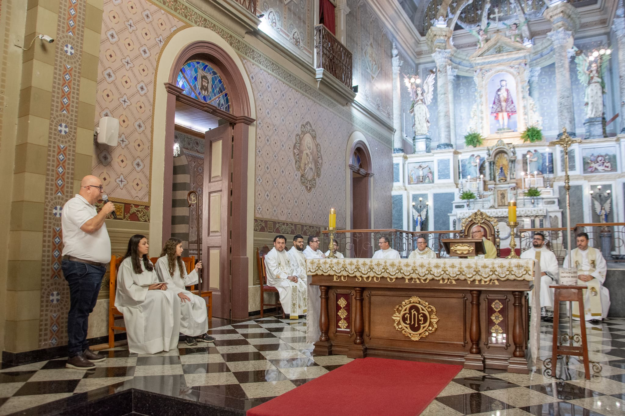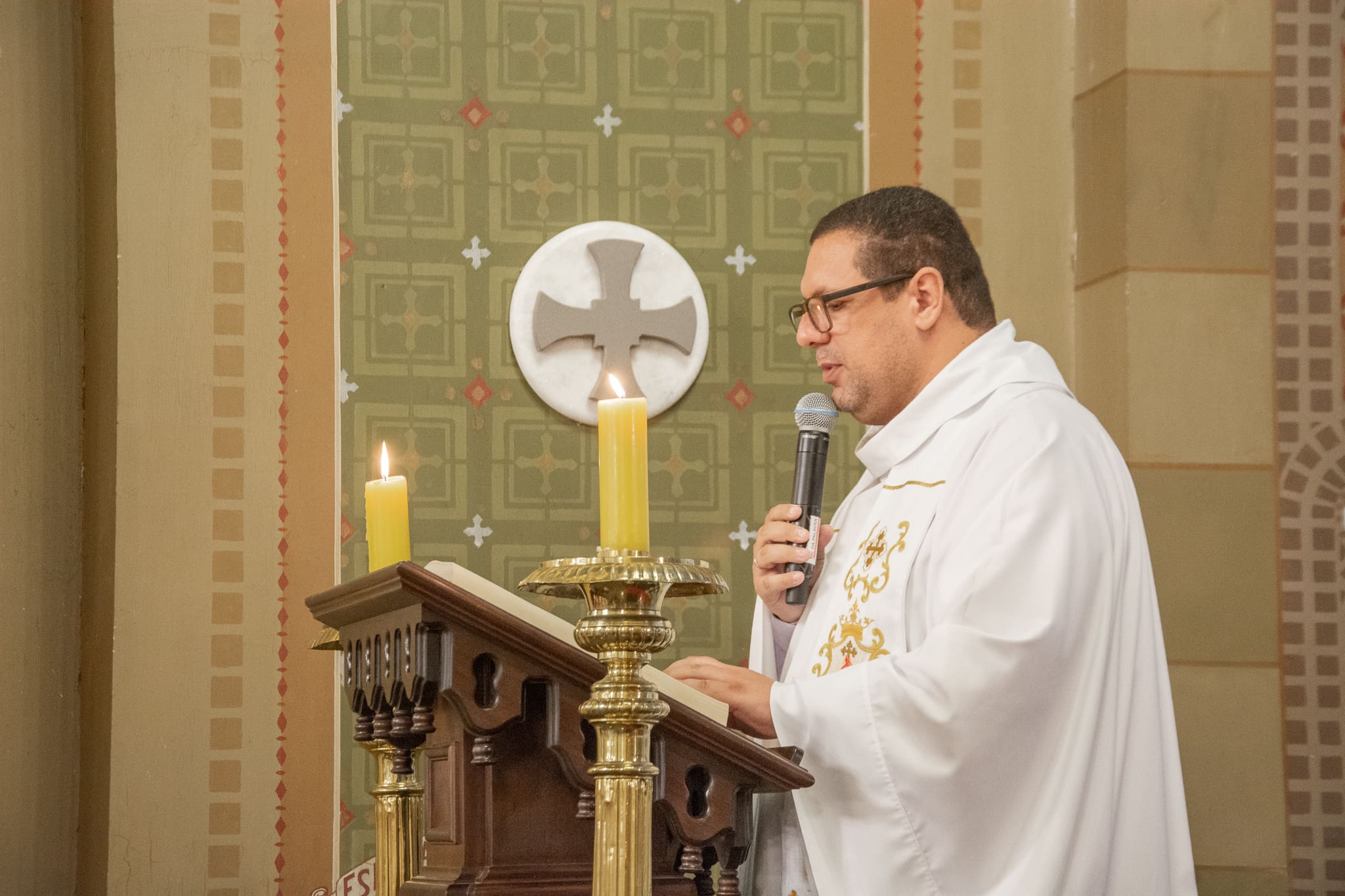 A celebração teve início com a apresentação e acolhida do novo pároco, gesto que marca oficialmente sua chegada e o reconhecimento da comunidade paroquial como seu novo campo de missão.