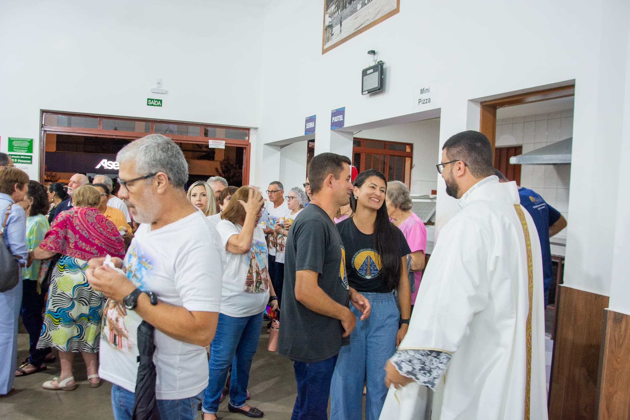 Após a bênção final, todos foram convidados a uma confraternização festiva, momento de alegria e integração, no qual o novo pároco pôde receber pessoalmente os votos e cumprimentos dos fiéis.