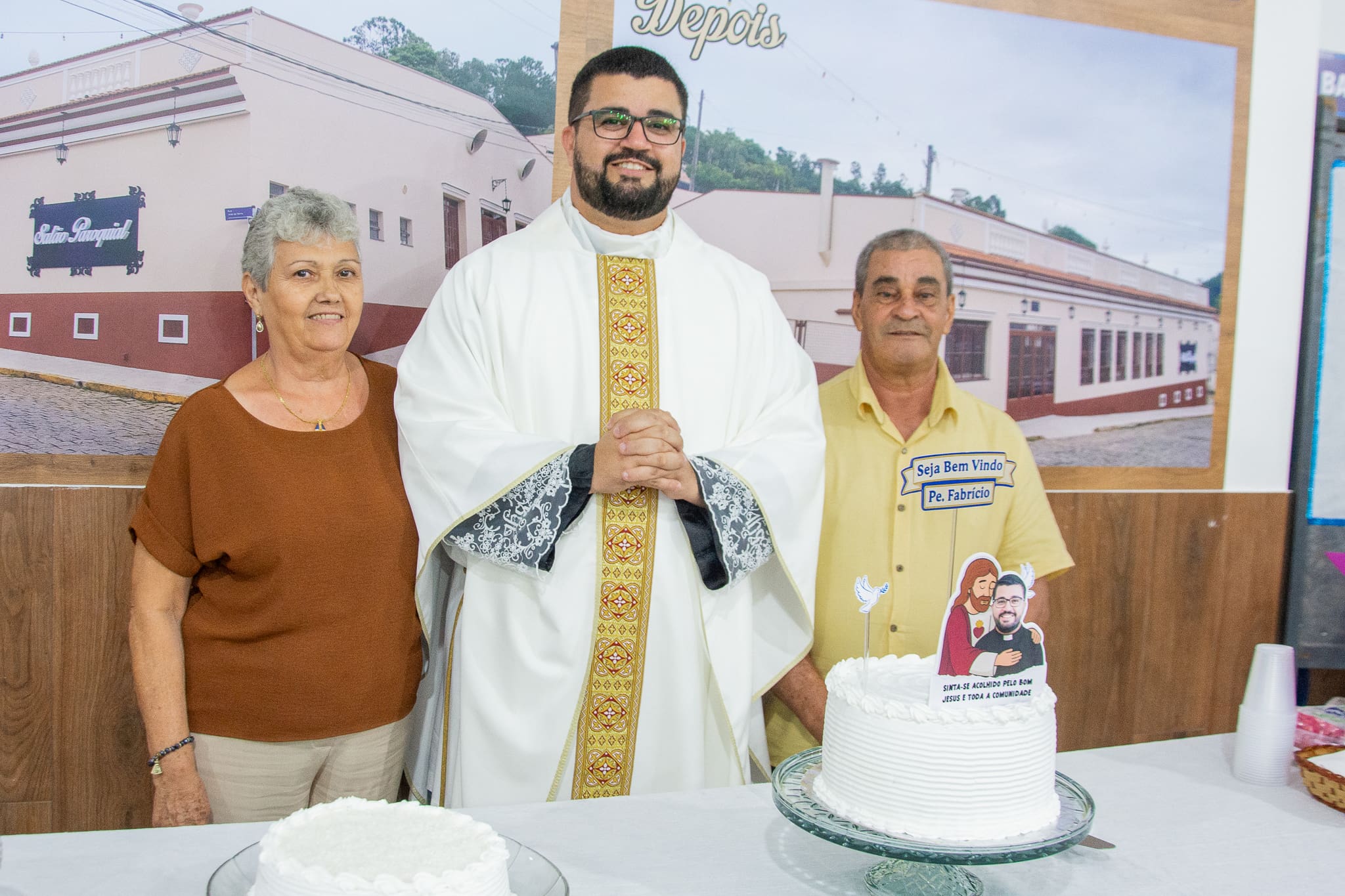 Ao final da celebração, o novo pároco recebeu os cumprimentos do prefeito municipal, Rafael Vezzan, e foram apresentadas todas as pastorais, movimentos e serviços paroquiais. Pe. Fabrício os acolheu com um abraço fraterno, gesto que simboliza seu desejo de caminhar unido ao povo.