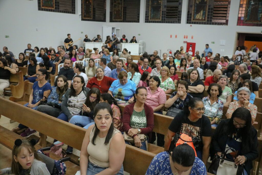 Após a celebração, houve um momento de confraternização, onde os paroquianos puderam dar as boas-vindas ao Pe. Leandro de forma pessoal e celebrar este momento na vida da paróquia.