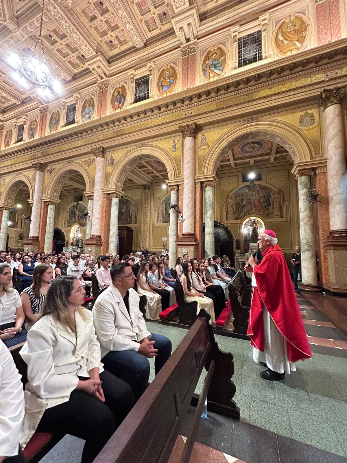 Na última sexta-feira, 7 de novembro, a Catedral Diocesana Nossa Senhora do Amparo realizou a celebração do Sacramento da Crisma, presidida por Dom Luiz Gonzaga Fechio, bispo diocesano de Amparo. Durante a Santa Missa, 37 jovens e adultos receberam o dom do Espírito Santo, fortalecendo sua fé e compromisso com a vida cristã.