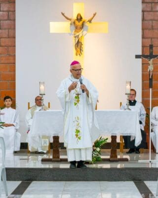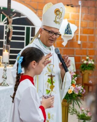 Ao final da celebração, Dom Luiz expressou sua alegria pela vivência comunitária e exortou os fiéis a manterem viva a fé e o compromisso cristão no dia a dia.