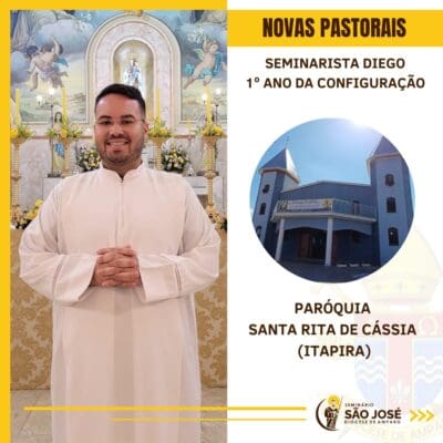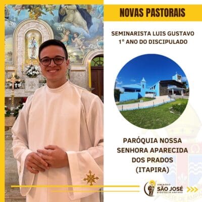 A Diocese de Amparo anuncia que, a partir de 2026, alguns de seus seminaristas iniciarão uma nova etapa de formação pastoral, assumindo novas experiências em comunidades paroquiais da Diocese. O período marca um momento importante no processo formativo, favorecendo o amadurecimento humano, espiritual e missionário dos futuros presbíteros.