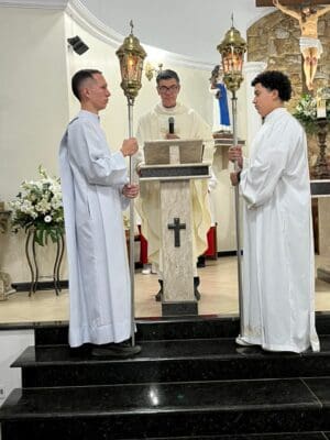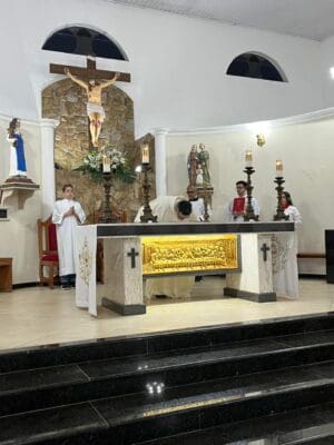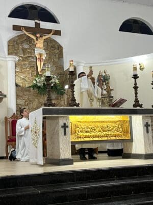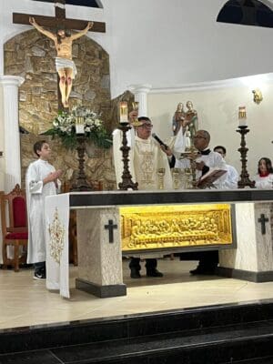 Na noite de ontem, 10 de junho, foi celebrado o 1º dia do Tríduo em honra a Santo Antônio na Paróquia Santa Dulce dos Pobres, em Jaguariúna. A Santa Missa, presidida pelo Pe. Alexandre Pereira, da Paróquia Santo Antônio de Pedreira, marcou o início deste tempo especial de e devoção.