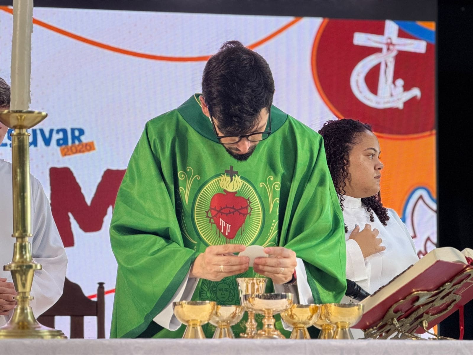 As atividades começaram às 14h com a abertura oficial e a tarde carismática. Às 15h30, houve o momento de preparação para a Santa Missa, que foi celebrada às 16h pelo Pe. André Ricardo Panassolo, pároco da Paróquia São Benedito, conduzindo os participantes à vivência do mistério eucarístico.